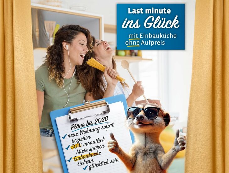 *Gilt für Wohnungen aus einem ausgewählten Wohnungspool an 1- bis 2 Raum-Wohnungen. Die Inanspruchnahme von mehreren Aktionsboni gleichzeitig ist ausgeschlossen.