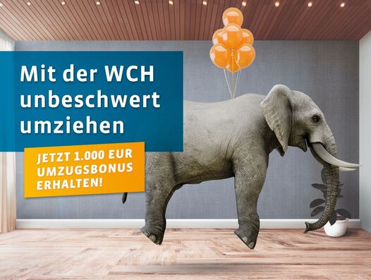 Die WCH erleichtert Ihren Umzug ins neue Zuhause! Denn mit dieser Aktion erhalten Sie einen Bonus in Höhe von 1.000 Euro zur freien Verwendung. Ob Sie diese Prämie als mietfreie Wohnzeit nutzen oder sich ganz in Ruhe mit der Einrichtung beschäftigen, bleibt ganz allein Ihnen überlassen.