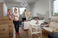 Auch Cathleen Fritzsche und Stefan Kagebauer haben die Baumaßnahmen im Rahmen der Komplexsanierung regelmäßig verfolgt. Im Internet fanden sie dann auch noch die passende Wohnung für sich und ihren 16 Monate jungen Nachwuchs. Viel Platz für die Familie, ein ebenerdiger Fahrstuhl, die „Eisenbahnbank“ im Hof, beste Verkehrsanbindungen, Kita und Schulen in Wohnnähe und vor allem auch der phantastische Ausblick aus dem 10. Stock waren die Gründe, weshalb sich das Paar schnell für eine 4-Raum-Wohnung in dieser Wohnanlage entschied.